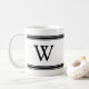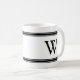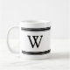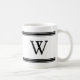 Monogram svart och vit stripe personlig mugg. Svart monogram i klassisk blocktext i svarta, strimlade yttre paneler. Vit bakgrund.