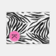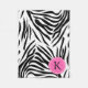 Monogrammad svart och vit zebra mönstrad filt. Ett band och en shock rosa där du kan placera den första shock rosa.