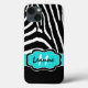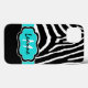 Monogrammat, svart, vit och akvblått zebra tryck stripe mönster Fodral-Mate Barely, fodral iPad Air kan anpassas med din logotyp, namn, initialer eller annan text. Om du behöver hjälp kan du skicka e-post till niteowlstudio@gmail.com.