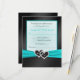 Monogram Black FAUX Satängfåll med Aqua RSVP OSA Kort