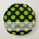 Monogram Black Grönt Chic Polka Dot Mönster Rund Kudde