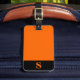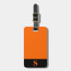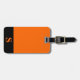 Bagagetagg med orange monogram initialer/namn på ett svart rand monogram ram, namn och adress på orangens bakgrund. Anpassa med dina inledande/inledande/inledande/inledande/namn, namn och adress med hjälp av de enkla mallarna. Färg, stil, storleka teckensnitt och orangens bakgrund färg är anpassade.