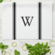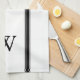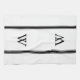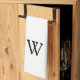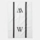 Kökshandduk av monogram personlig, stripad, Svart monogram i klassisk blocktext överst och underst gräns i svarta, strimlade yttre paneler. Vit bakgrund.