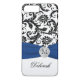 Monogram Black, White, Blue Damask iPhone 7 Fodral Case-Mate iPhone Skal
