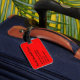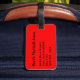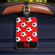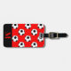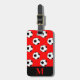 Bagagetagg med svartvit fotboll bollar, inledande mongram/namn och adress på röd bakgrund. Anpassa med dina inledande/inledande/inledande/inledande/namn, namn och adress med hjälp av de enkla mallarna. Teckensnitt färg, stil, storlek teckensnitt och röd bakgrund färg är anpassade. Perfekt för idrottsentusiasten.