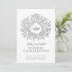 Monogram-blad grått på vit vigselavbokning meddelande