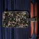 Monogram Blommig Bagage Tag. Denna stilrena och eleganta vildblomsbagagetagg har vackra handmålade akvarellvildblommor arrangerade i ett vackert mönster på svart bakgrund. Hitta matchande föremål i Black Boho Wildflower Wedding Collection.