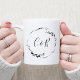 Monogram Blommig Krans Vit Script Bröllop Kaffemugg