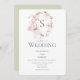 En söt akvarell delikat krans av pastell rosa blommor med enkel luftig grönska och elegant typografi. Lägg till din monogram i en vacker krans för en fantastisk klassisk look. Mjuk grön färg på baksidan av denna vackra inbjudan för den perfekta eleganta bröllopsinbjudan för din speciella dag.