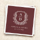 Monogram Blommig Vapen Burgunder Röd Bröllop Pappersservett
