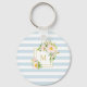 Monogram Chic för Blommigt Pastel Blue Rand Keychain. Utformning av trendig i elegant med pastellbuketter av vintage i vild ro och grönt på ljusblå rand, guld blommigt och ram monogram. (Guld är inte guld utan färg.) Cute, shabby chic, med ett kust/Provence stil. Underbar personlig.