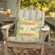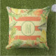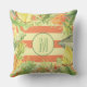 Snyggtens ytterkuddar har ditt monogram omgivet av vattenfärgade tropiska blommor, frukter och löv på en mjuk grönt och korallat rand. MATCHING-objekt i vår butik.