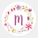 Monogram Blommigt Vattenfärg Runt Klistermärke