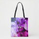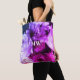 Ljus levande och livfull design inspirerad av mina egna fotografier av en blomsterbukett. Kan anpassas och personifieras med initialer eller monogram om så önskas. Nyanser av lila, lavendel, syren, violett, marinblå, vinröd, burgunderröd, rosa, magenta, fuchsia. Elegant och fashionabel accessoar för dig eller som en genomtänkt, kreativ och vacker present under 50 dollar till henne, till och med under 30 dollar. Vacker, feminin och elegant totebag med tryck över hela ytan som du kan använda och bli sedd och beundrad för. Eller som en mycket mångsidig present till födelsedag, bröllop, brudvisning, årsdagar, examen, påsk, jul, mors dag, Alla hjärtans dag etc.