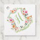 Monogram blomsterkrön i vattenfärg, grön & rosa gåvor etiketter