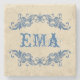 Monogram Blue & Cream Blommigt Swirl Mönster Underlägg Sten