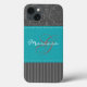 Snyggt med ett modernt grått i monogrammet och ett turkosblått dammmönster med rand Fodral-Mate Barely™ iPad Air fodral kan anpassas med logotyp, namn, initialer, monogram eller annan text. Om du behöver hjälp kan du skicka e-post till niteowlstudio@gmail.com.