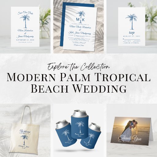 Modern Blue Palm Tree Tropical Beach WeddingDesignad av Laura C.