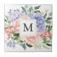 Monogram Blue Rosa Hydrangea Peony Vår Blommigt Kakelplatta
