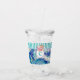 En akryltumlare med ett sugrör som du kan ta vart du än går - även stranden! Den blå och vita vilden, den vinkarare, som skryter i vitt skum är min egen målning. Denna vild och detta energetiska hav dämpas av ett lodrät som är randigt, turkotiskt gräns överst och som punkteras med min snäcka för vattenfärgen. Lycklig sippar!