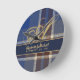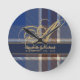 Monogram Blue Tartan Play Newlyweds Bröllop Rund Klocka