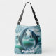 Dig in i sofistikering med Monogram Blue Teal Dolphins Ocean Large Crossbody Bag. Den här rymliga väskan kombinerar praktisk och konstnärlig flluft med en stillastående oceanisk motiv som är adorerad med två delfiner i pulserande blå och teala nyanser. Anpassa den med ett monogram för en personlig beröring som återspeglar stil. Perfekt för bekvämlighet utan händer, oavsett om det gäller dagliga ärenden eller äventyr, erbjuder denna korsningspåse omfattande lagring och marininspirerad design