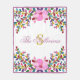 Boho Fleece Blanket med blommigt/ foliemonogram. Vitaktig с oljig gren med lila, blått, rosa, gyllene, grönt löv och rosa hibiscus blommor. Golden monogram + lila namn. Lila gräns. En underbar personlig.