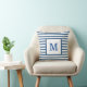 Lägg till ett sött, gigantiskt, modernt mörk blått och vitt, strippat dekorativ kudde med anpassningsbarnas monogram namn eller initialer, till ditt mysiga hem eller sött baby! Tillverkad med bomull och har stridit mönster på båda sidor. Anpassa den med ditt favoritteckensnitt och färg för att göra den till din enda lycklig-kudde!