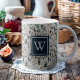 Monogram botaniskt vattenfärgsgrey kaffemugg