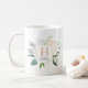 Eleganta blush- och guldvattenfärgblommor flödar runt en anpassad monogram-initial och namn i delikat skrift på denna raffinerade mugg. Den mjuka, romantiska paletten av blush rosa, elfenben och antikt guld skapar en lyxig och feminin känsla. Initialen och namnet är helt redigerbara för en personlig souvenir. Perfekt som brudtärna-förslag, födelsedagspresent eller en vacker tillägg till hennes dagliga rutin.