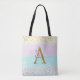 Över hela Mönster Tote = Denna över skuldersäcken är täckt med en modern GULT LAVENDER ROSA MINT GRÖNT PASTEL BRUSH STROKE RAND WATERCOLOR-bakgrund och magiska mousserande GOLDEN GLITTER DOTS.