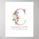 Monogram Brev C Rosa Watercolor Blommigt Nursery Poster