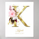 Monogram Brev K Gold Foil & Rosa Blommigt Nursery Poster