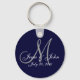 Monogram Bröllop Bride Groom Date Navy Nyckelring