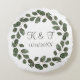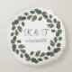 Anpassa denna vackra Eucalyptus löv Round-kudde med initialer och ert bröllop-datum.