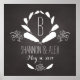 Fira bröllopsdagen eller årsdagen av din favoritbrud och din favoritbrudgumm med det här anpassadet! En elegant vit ring av fjädrar på en svart kritersbakgrund omger ett monogram; ett pars namn och bröllop kan anpassas nedan. Gör en vacker, modern, personlig gåva.