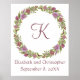 Ett monogram bröllop-datum och namn rosa lila och grönt-blommigt poster. Tillgänglig i många storlekar och ramar är tillgänglig.