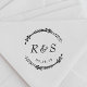 Anpassningsbar-designade bröllop monogram/inledande frimärke med handborrad botanisk krans och vintage stil ampersand. Anpassa med briden och brudgummen/parets initialer och bröllop. Perfekt för rustik, boho och grönt temat bröllop.
