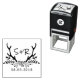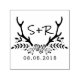 Skapa dina egna Bröllop-tillbehör och Spara datumen - frimärke så många kort och märkre och kuvert som du behöver med det här anpassade gummifrimärket. Har initialer med antlers och ro i ett stil i hammaren. Underbar för alla dina utskick samt en bröllop, förlovning eller husuppvärmningspågift eller personlig för tillfällen!