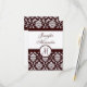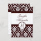 Monogram Brown Damask OSA kort. På Felt Papper kräm täcker färg 100 lb vikten papper. Det är ett varmt, buff-tonat lakan med en präglad avsluta som känns som bra-konst papper. Lägger till ett klasstips till alla inbjudningar och meddelanden. Anpassa med ditt monogram namn och bröllop färg. Lägg till all information om bröllop på kortets framsida och baksida med hjälp av Zazzles meddelanden som är enkla att använda på eller kontakta oss för anpassad design.