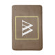 Brun bakgrund med geometrisk kvadrat med mjuk gult. Monogram i vit typografi. Modern höst färger. Originaldesign från TamiraZDesign.
