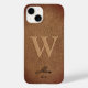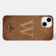Monogram Brun Rustik Läder stilfullt skrivet namn Case-Mate iPhone 14 fodral, med anpassad text, du kan anpassa ytterligare om du önskar. enkla manliga minimalistiska presenter (semester, födelsedag, jul, eller vardagspresent, till vem som helst.