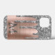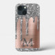 Modern, giftig silver grått glitter droppar namn och monogrammat iphone case. Den här designen har droppar i silver grått (grått) glitter-gnistra på rosa ros guld, borstad metall bakgrund med anpassningsbar-personlig som första och första namn-textmall. Perfekt kvinnlig gåva. Observera att den här designen är en utskriven fotoeffekt. Kontakta mig om du behöver hjälp eller matchande artiklar.