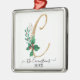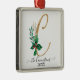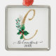 "Monogram C Holly jul Glitter-familjen Metall Ornament. Brev C Initial Monogram. Elegant vattenfärgsholly löv och röda vinterbär tillsammans med löv från löv och guldgröna grönområden. Fullständigt alfabet finns i den samling som visas nedan. Konstverk av internationellt licensierad konstnär, Audrey Jeanne Roberts, upphovsrätt.