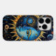 Monogram Celestial Solar System Showcase Fodral-Mate iPhone 14 Pro Fodral Den här moderna iphone case-designen har en känslosam sol måne på en galaktisk kosmisk mörk med planeter och stjärnor för ett utseende som är snyggt och roligt. Ditt monogram är i fet svart i en beige cirkel under sol. Gör perfekten till jul, födelsedagar, Mors dag, Fars dag, studenten, pension och mer.