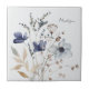 Monogram Chic Vacker Vattenfärg Blå Blomma Kakelplatta