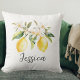 Monogram Citron Frukter Vita Blommor Trädgren Kudde