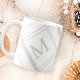Monogram Classic Elegant Minimal vit Play Namn-kaffe mugg. Enkel att anpassa modernt, elegant, typografiskt monogram. Perfekt för en presentidé med monogrammet denna jul, eller för födelsedagskalkeringar för vänner och familj.