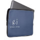 Ett dammigt blått laptop sleeve för hem eller företag, med ett enkelt rent modernt minimalistiskt monogram med ett enkelt lägre fodral serif-typografi initialer. Ett skiljetecken (punkt) delar upp det första och sista tecknet som ett enkelt utformat inslag som definierar detta typografi stil som modernt och rent. Ditt namn i versalserif-typ. Enkel, ren och modern.