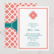 Monogram Coral Rosa och Teal Quatrefoil Bröllop Inbjudningar